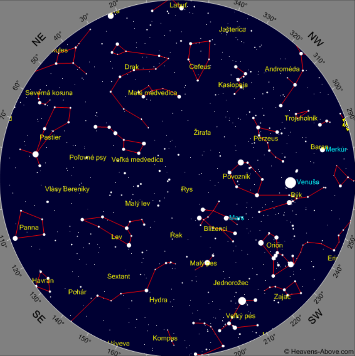 Mapky znázorňujú polohu planét na rannej a večernej oblohe pre stred príslušného mesiaca: