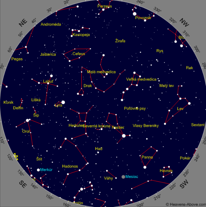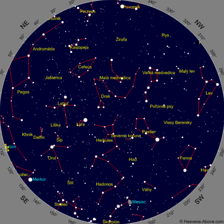 Mapky znázorňujú polohu planét na rannej a večernej oblohe pre stred príslušného mesiaca: