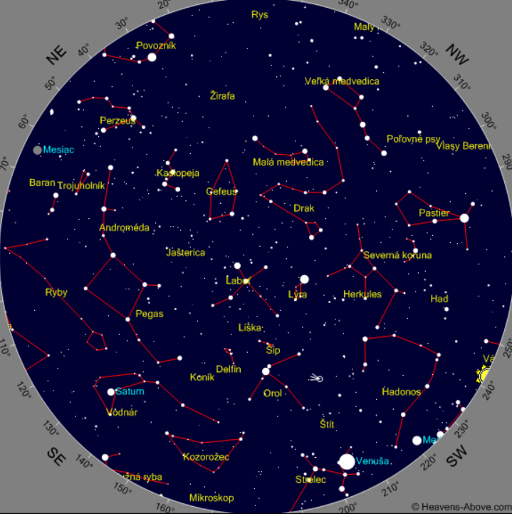 R.A. 2000 a Decl. 2000 – súradnice kométy na oblohe