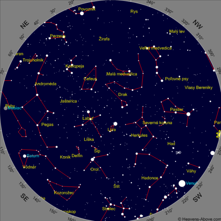 Október – večerná obloha (poloha Mesiaca 16. októbra)