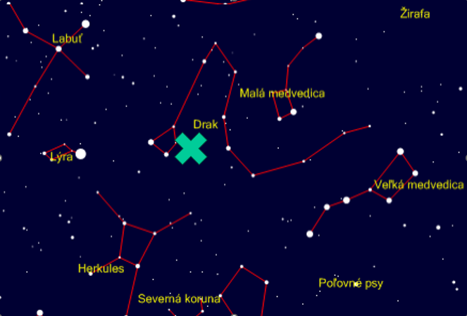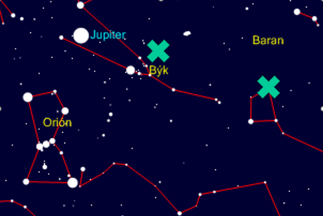 Radianty meteorického roja Tauríd. Vľavo radiant severnej vetvy, vpravo radiant južnej vetvy.