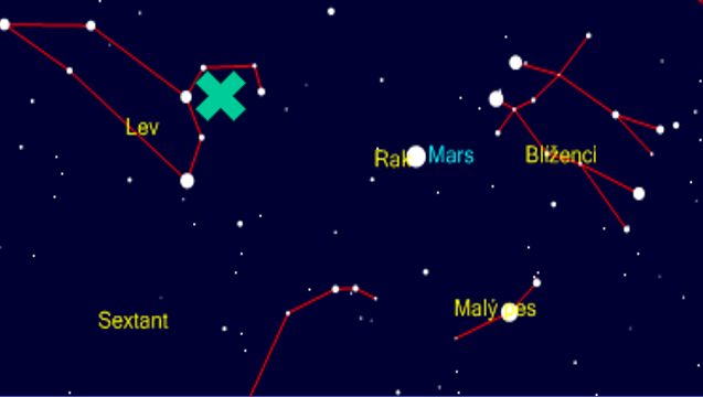 Mars – podmienky na pozorovanie sú výborné, v októbri bude viditeľný na rannej oblohe, neskôr prakticky celú noc. V októbri bude vychádzať hodinu pred polnocou, v novembri okolo 21. hodiny a v decembri už okolo 19. hodiny.