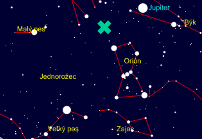 December – ranná obloha (poloha Mesiaca 16. decembra)